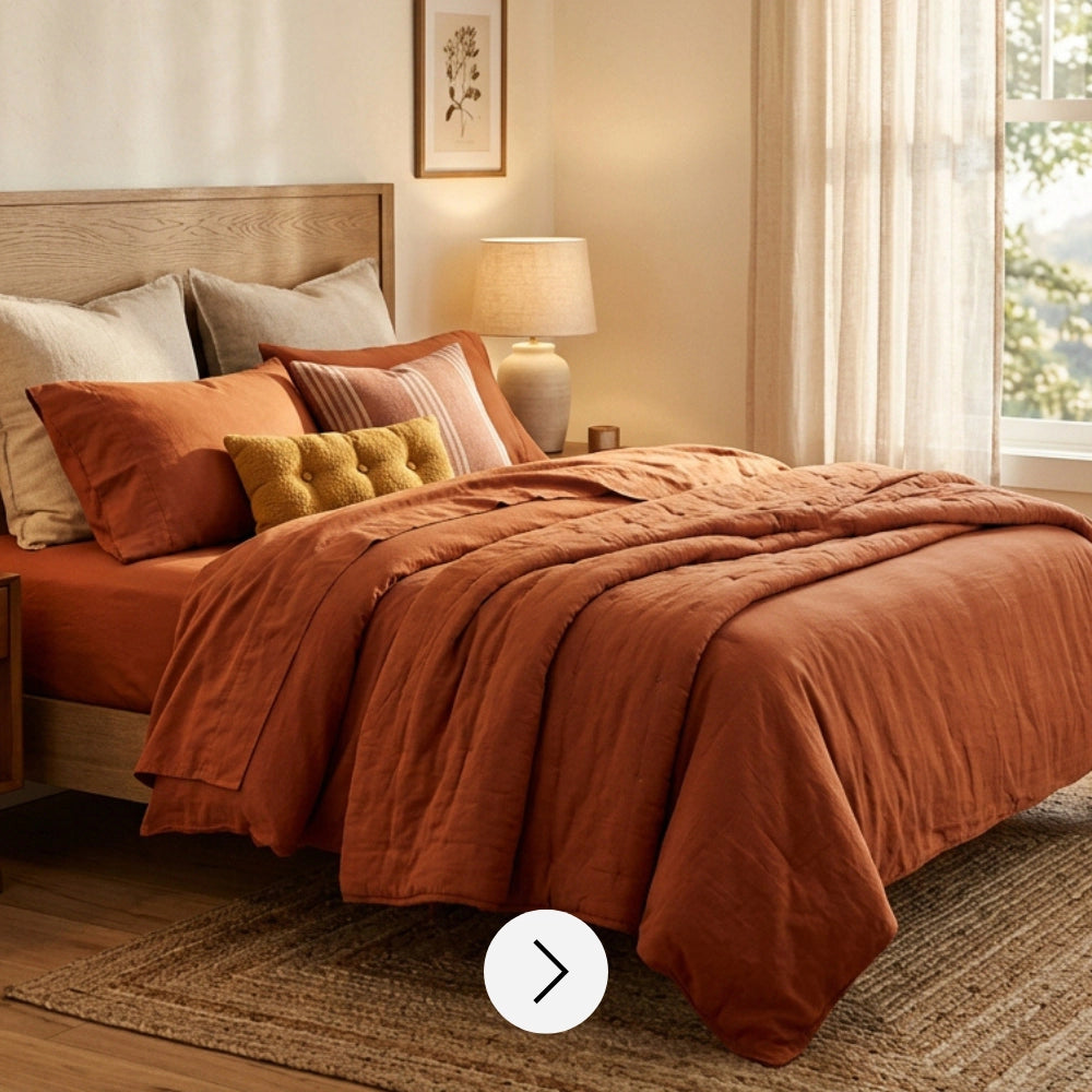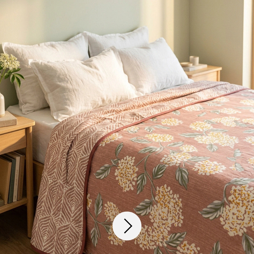 Blush florals, filtered light and breathable cotton come together to create a room that feels calm before the day begins. Every piece is designed to sit effortlessly with the other.