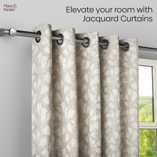 Poly Cotton Jacquard Window Curtain Urabn leaf, Brown
