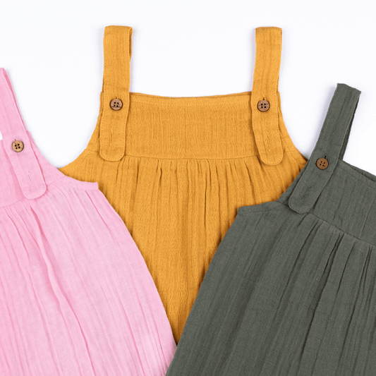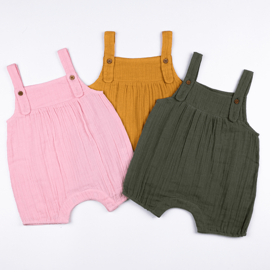 Mint Meadow Muslin Dungaree Romper Set- Mint Green