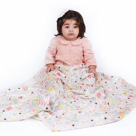 Little Bloom 100% Cotton Muslin Reversible Blanket for New Born Baby
