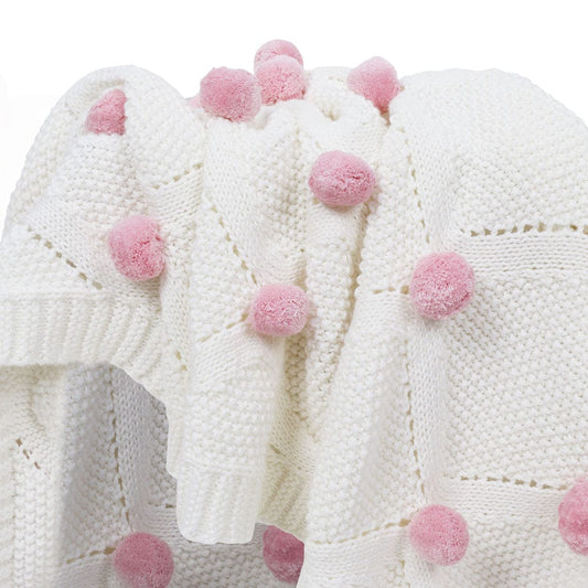 Bubblegum Pink Pom Pom100% pure cotton knitted Summer/AC blanket for baby