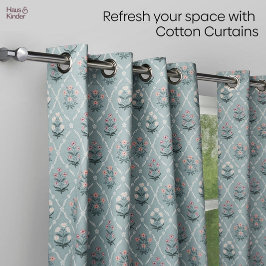 Cotton Printed Curtain Blue Spruce Trellis, Teal