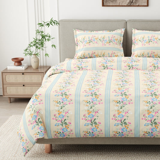 Floral Reverie Combed Cotton King Bedsheet, 186 TC