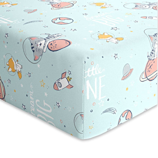 100% cotton fitted crib sheet, Pack of 1 (52*28*8Inch), Spacewalk