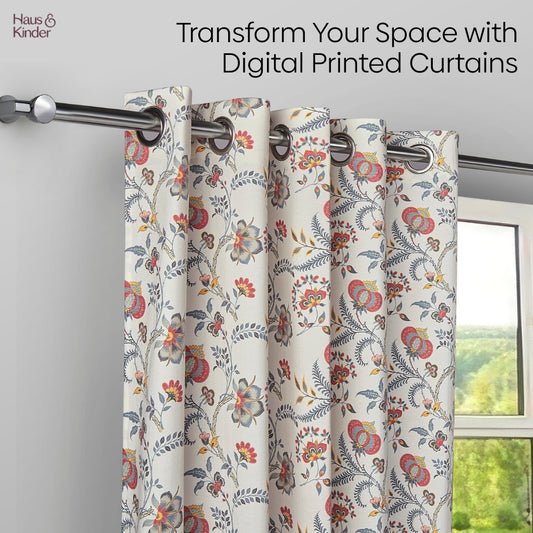 Poly Cotton Digital Printed Curtain Saffron Garden, Multi