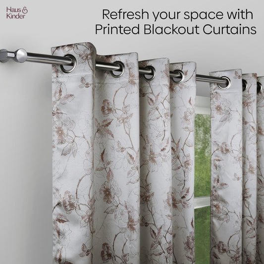 Polyester Printed Blackout Curtains Sepia Blossoms, Multi