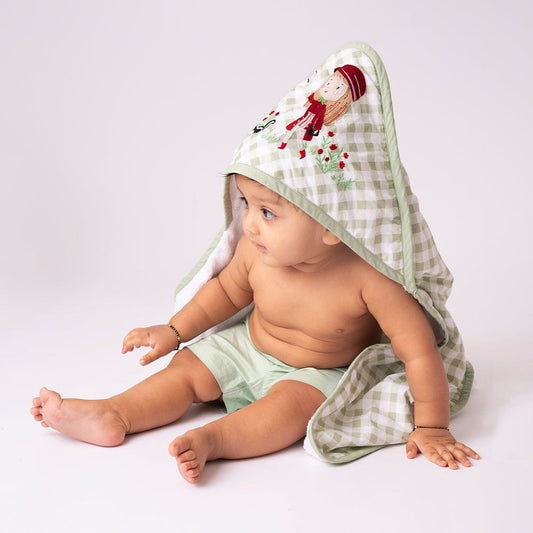Cotton Muslin-Terry Hooded Towel ( Newborn - 12 Months) - Scarlet On adventure