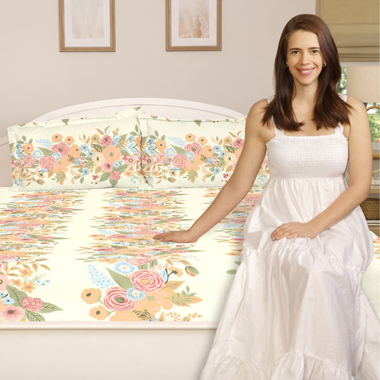 100% Combed Cotton 144 TC Double Fitted Bedsheet Oribella Bloom