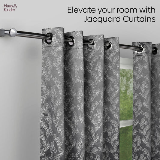 Polyester Jacquard Window Curtains Midnight Willow Steel, Grey
