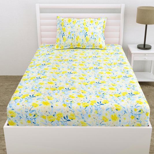 100% Cotton Single Fitted 186 TC Bedsheet, Floravue, Multicolor