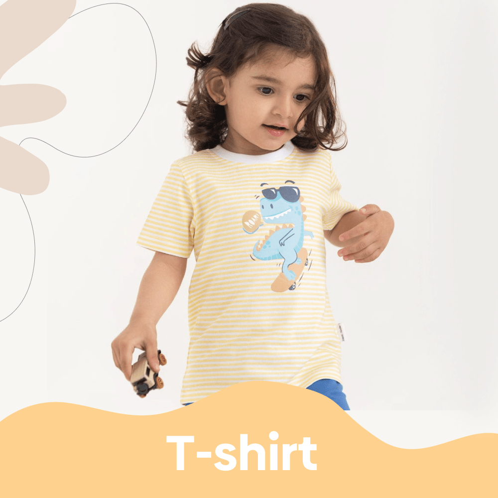 100% Cotton Half Sleeve Boy T-Shirt, Blue-Yellow