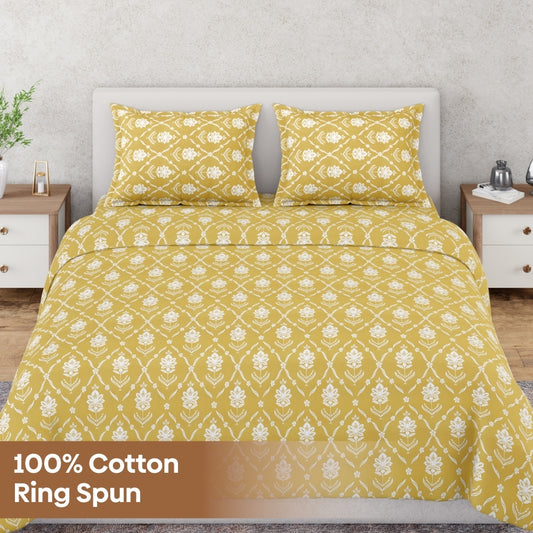 Ring Spun 100% Cotton Bedsheet- Golden Dahlia