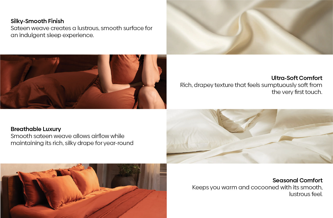 Sateen sheets feature a four-over-one-under weave for a silky-smooth touch and subtle sheen