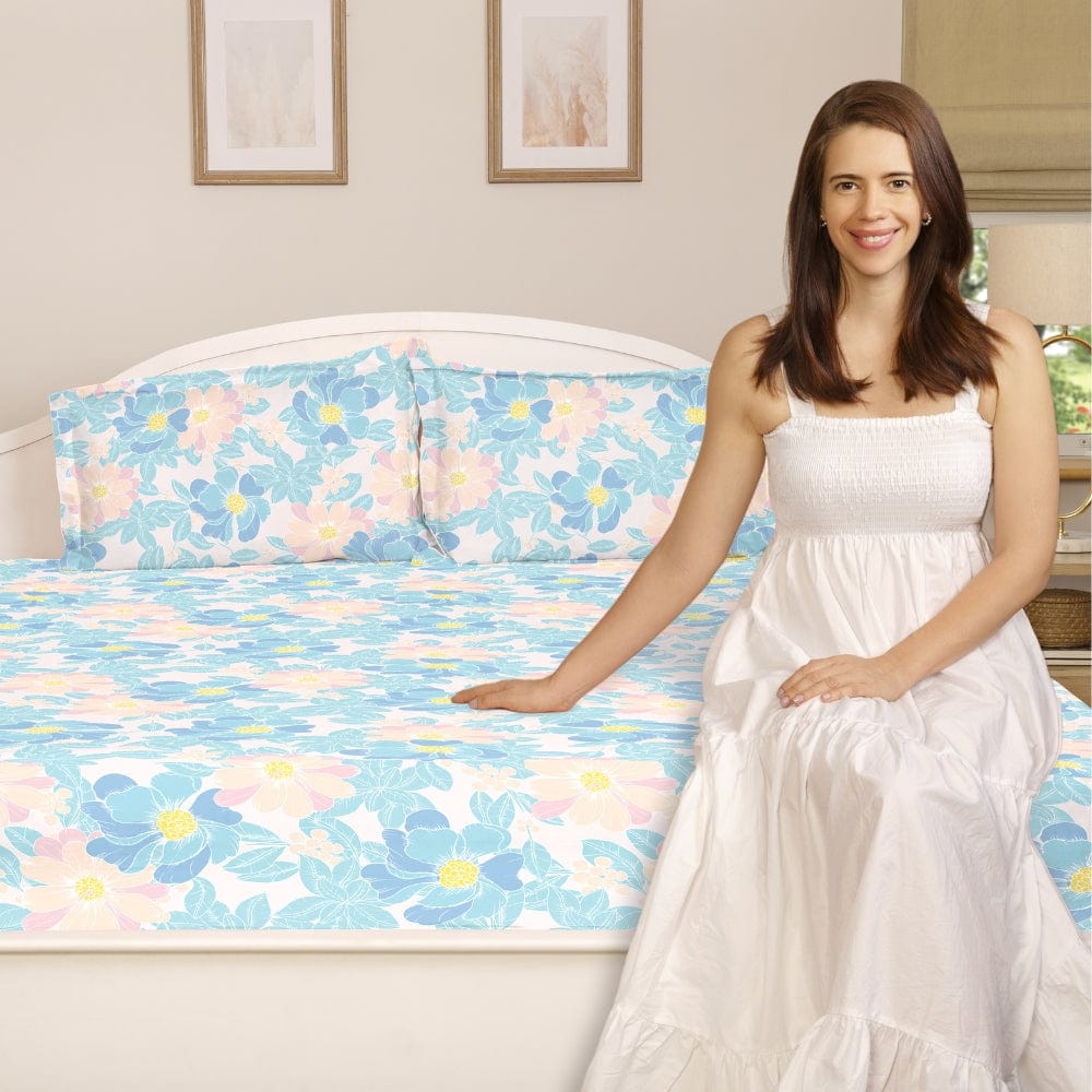 100% Combed Cotton 144 TC Double Flat Bedsheet Petal Veil
