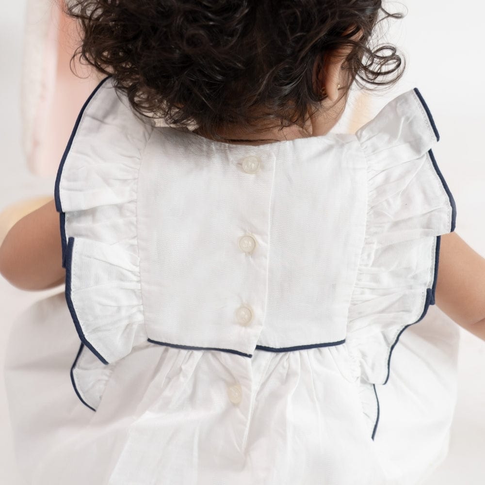 Flounce cross-over back, gathered seam, Ruffled bloomer