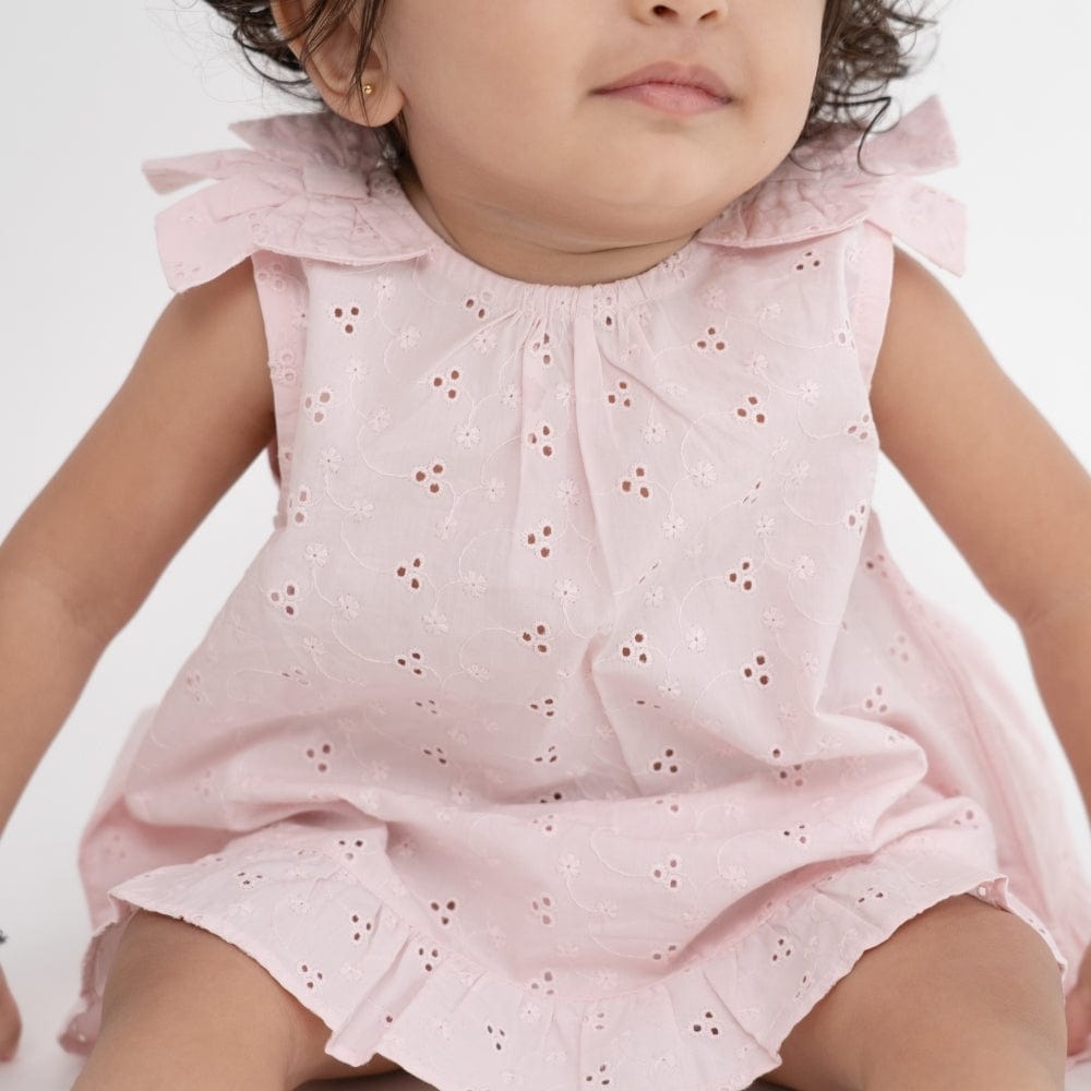 Flounce cross-over back, gathered seam, Ruffled bloomer