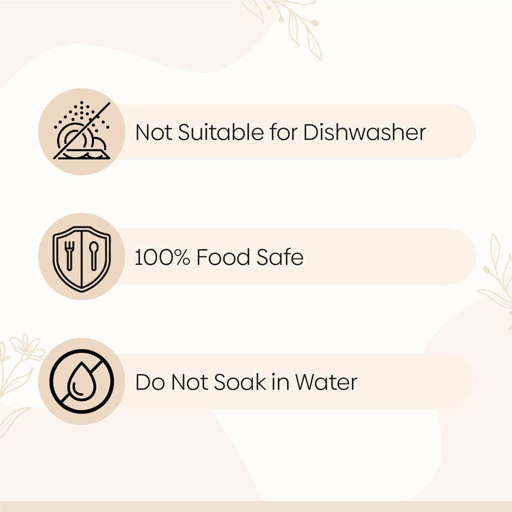 Not suitable for the dishwasher, Do not soak in water, wipe with soft damp cloth only, Handmade with love, Food safe