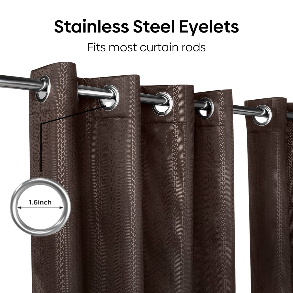 Blackout Solid With Embossed Design Cordova Pack Of 2 Curtain, Mocha