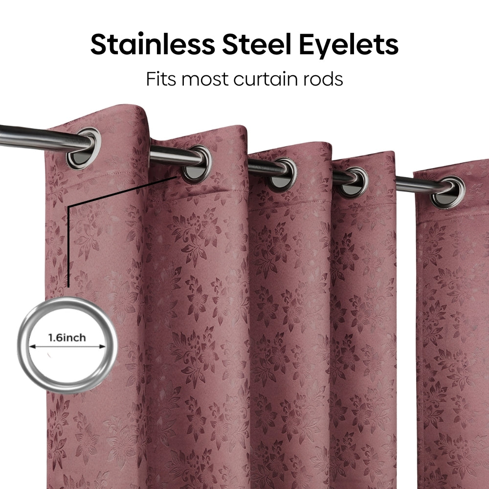 Blackout Solid With Embossed Design Elysian Bloom Pack Of 2 Curtain, Rose