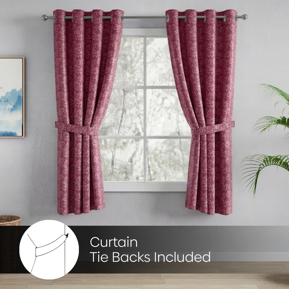 Blackout Solid With Embossed Design Elysian Bloom Pack Of 2 Curtain, Wine