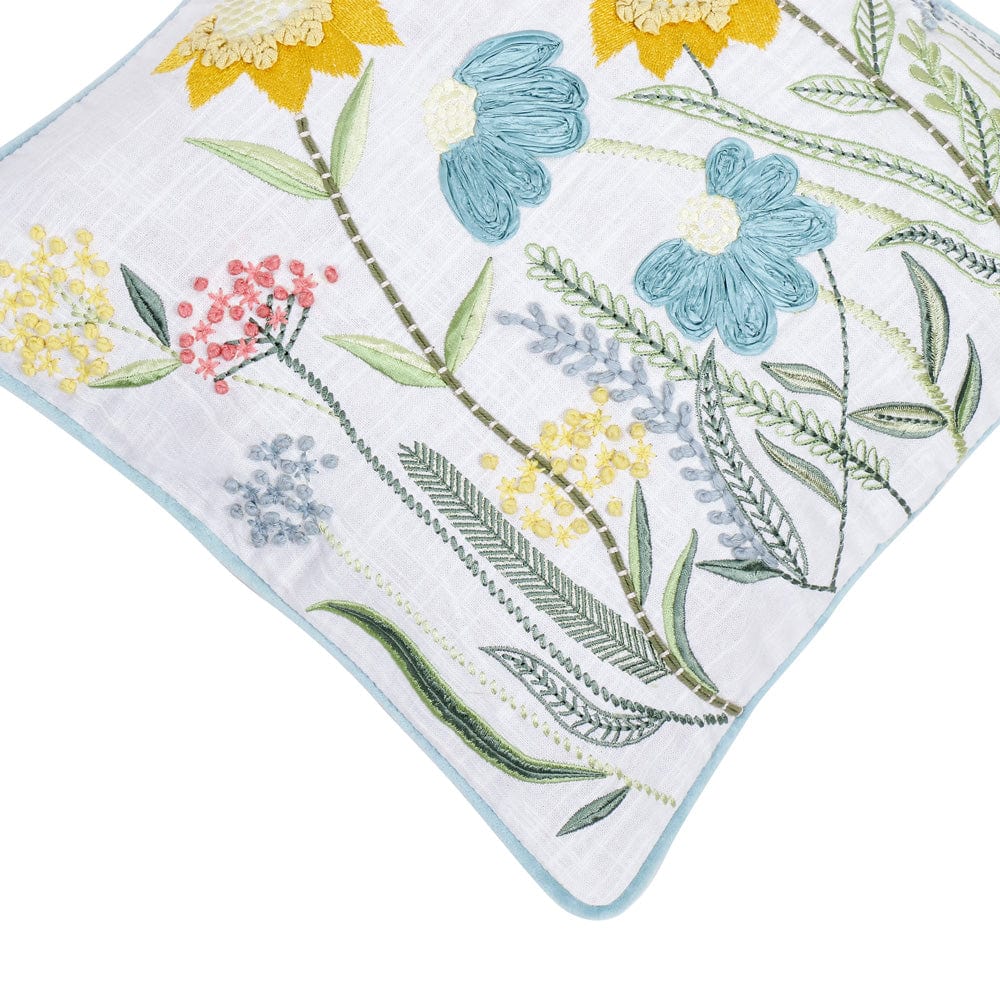 Embroidered Decorative Cushion Cover, Aqua floral
