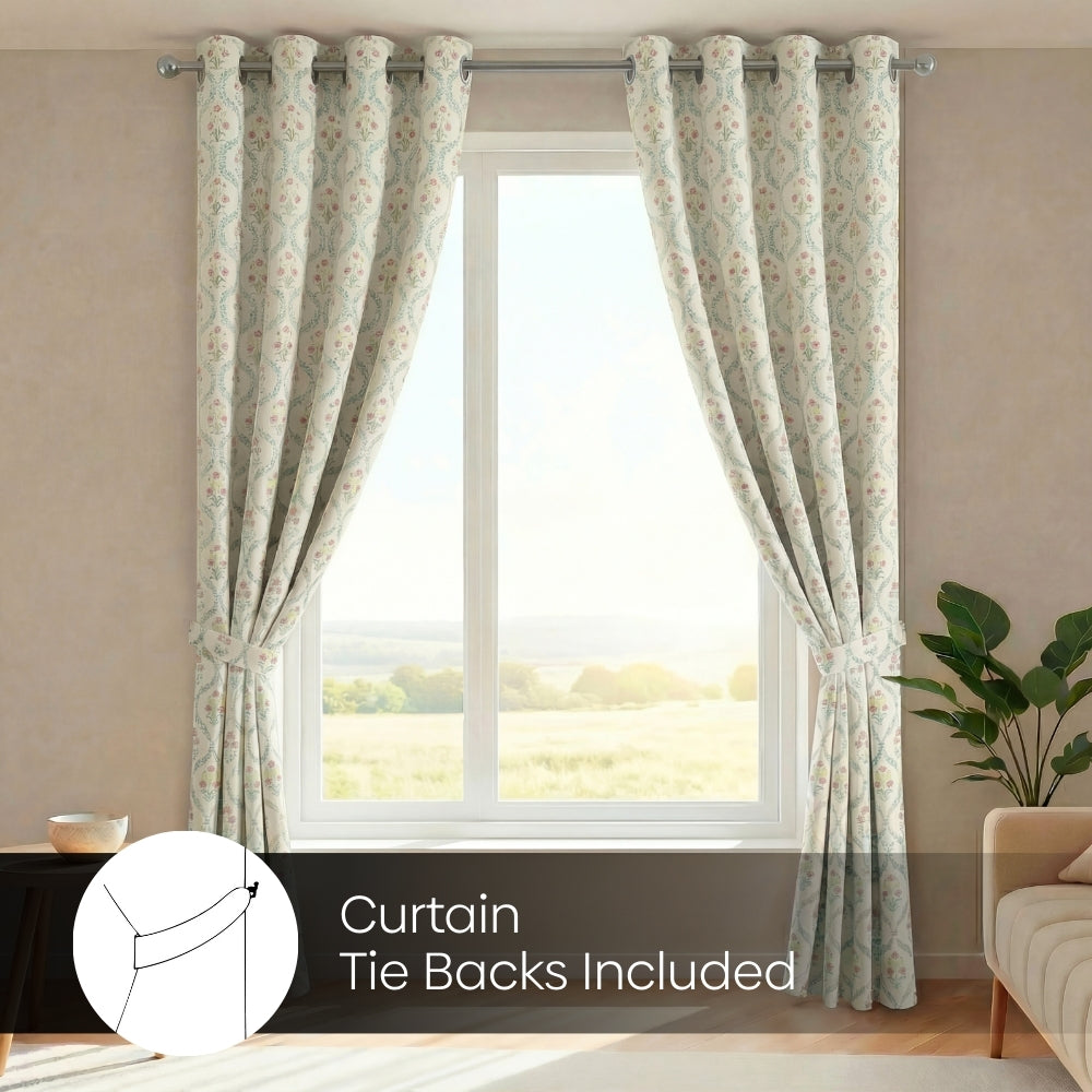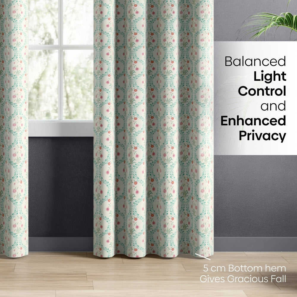 Cotton Printed Pack Of 2 Curtain Pink Blossom, Teal