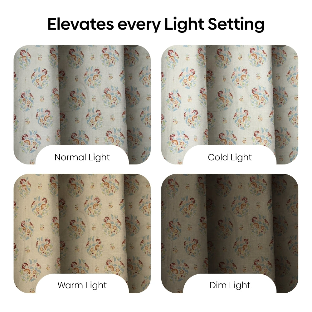 Cotton Printed Pack Of 2 Curtain Whispering Songbird, Multicolor