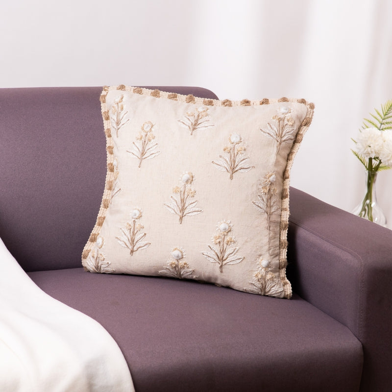Embroidered Decorative Cushion Cover, Earthy Elegance