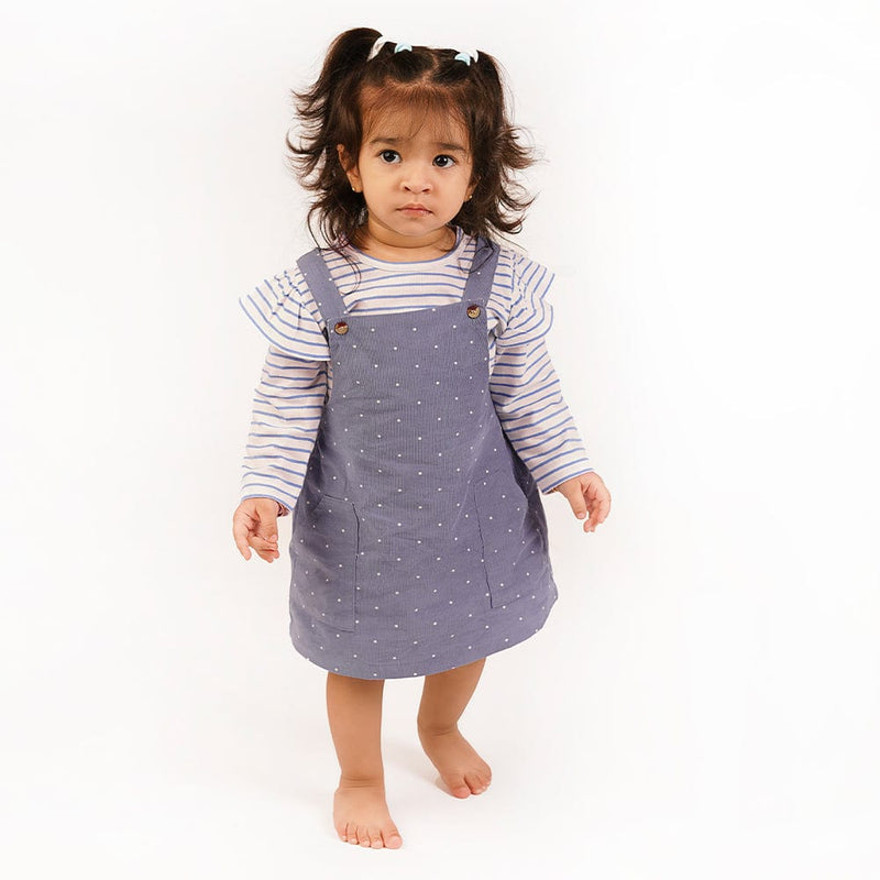 Girl Frock with Tshirt, White-Blue 6-24 Months