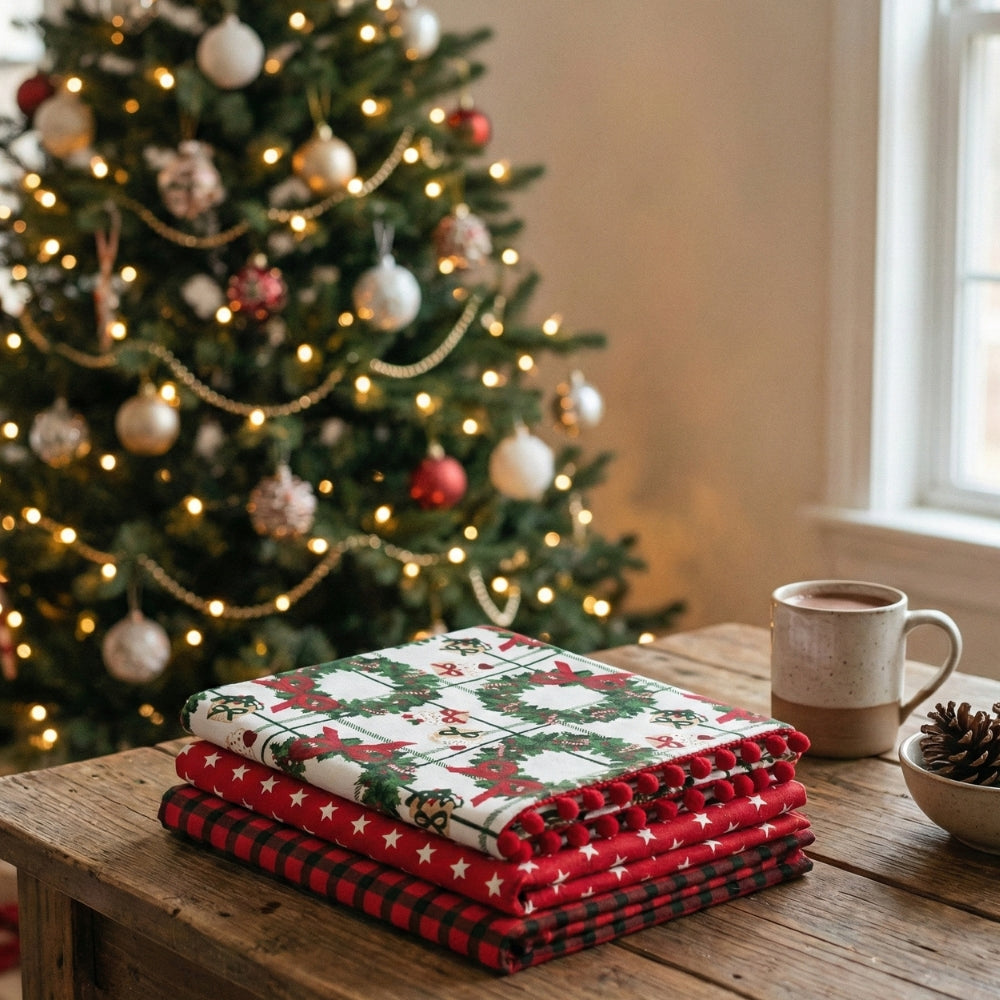 Joyful Jingles, Digital Printed and Embroidered Kitchen Towel, Assorted Set of 3