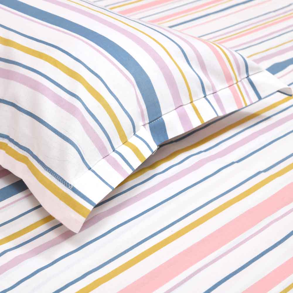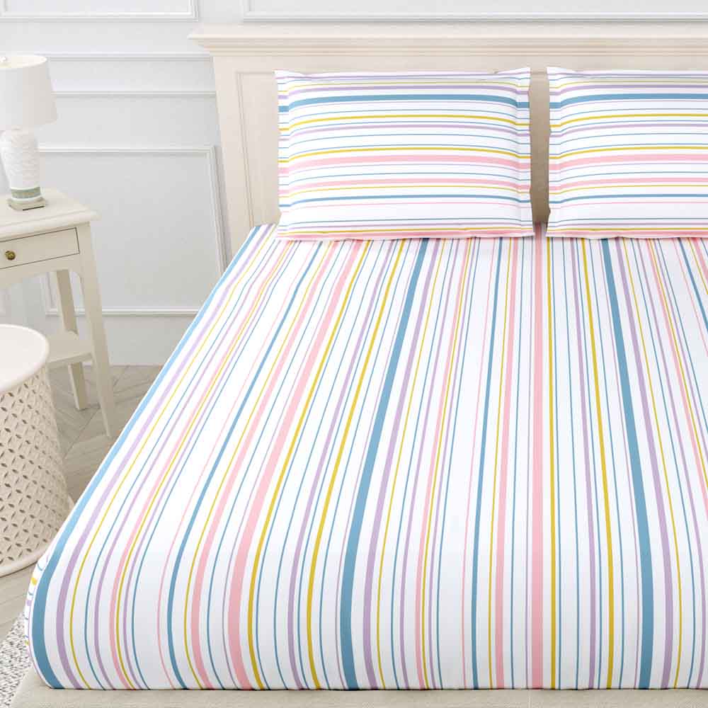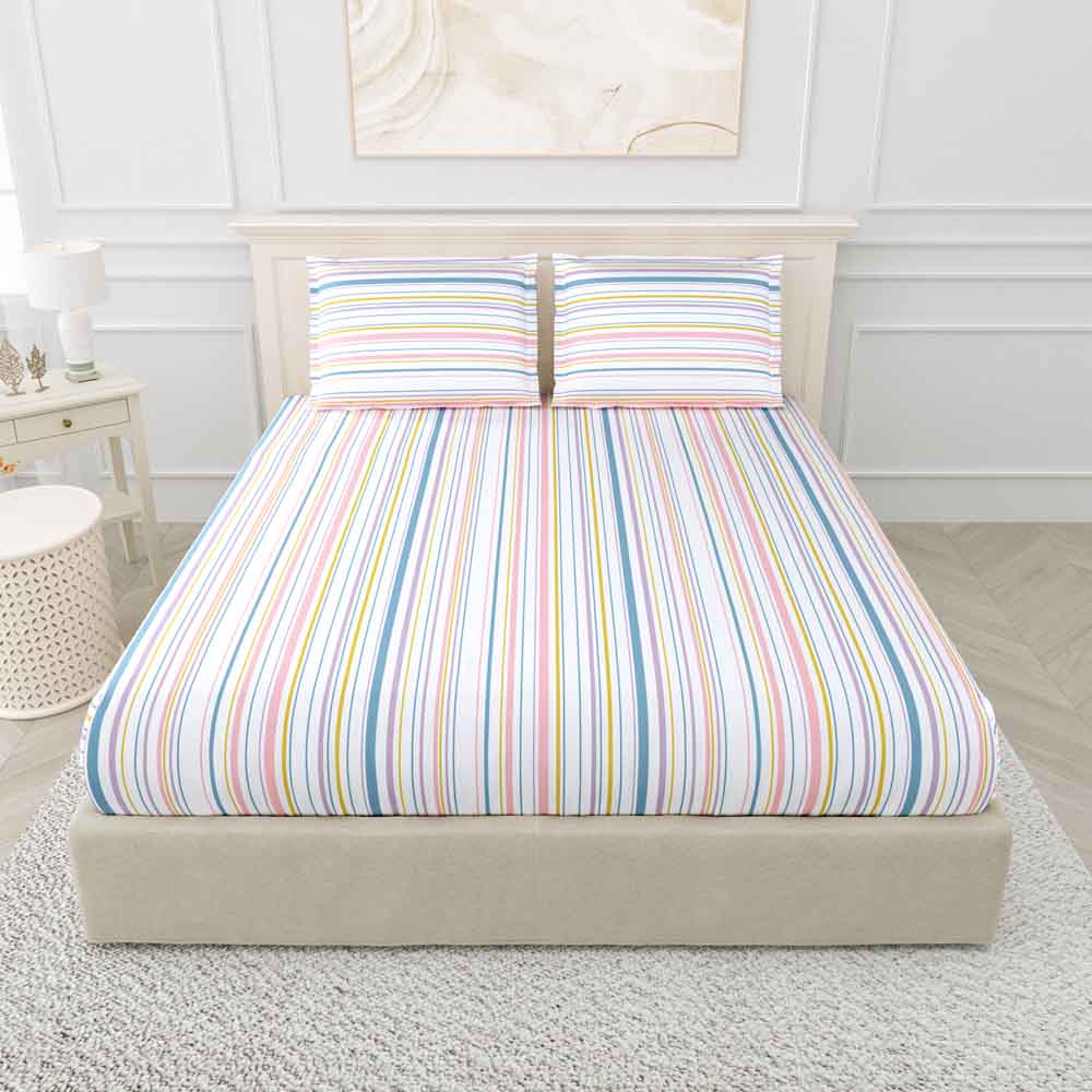 Magical Stripes 100% Cotton King Size Bedsheet, 186 TC, Blue and Yellow