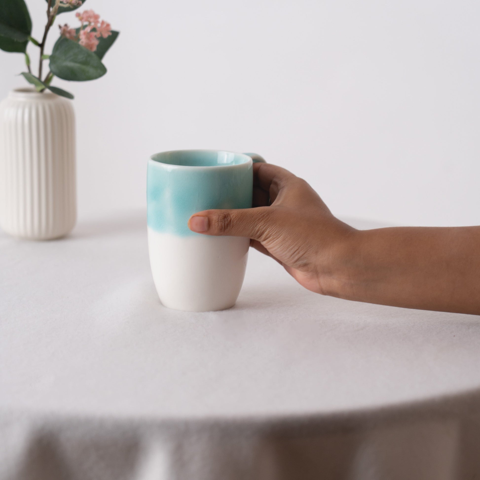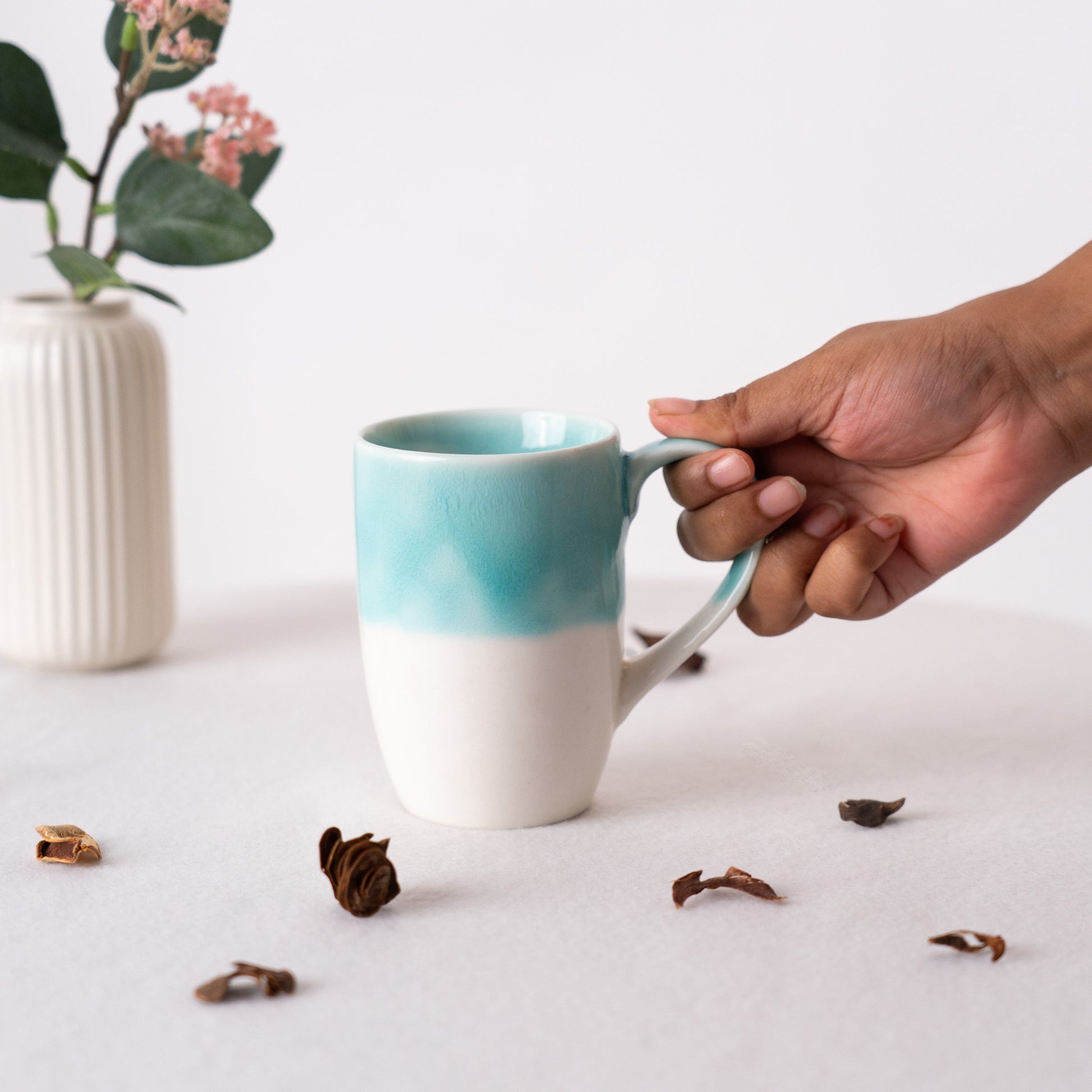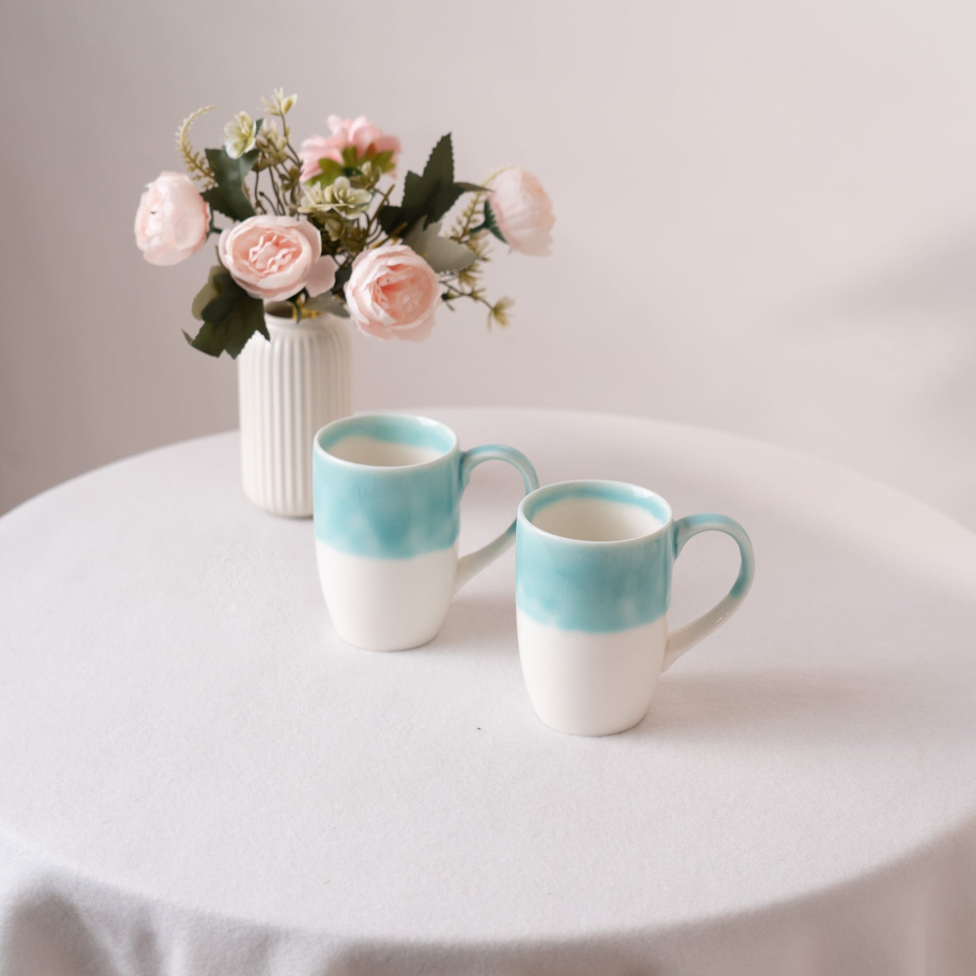 Ocean Breeze Porcelain Mug- Green & White Set of 2