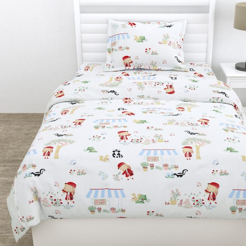 Percale 210 TC Single Flat Bedsheet- Scarlet on Adventure