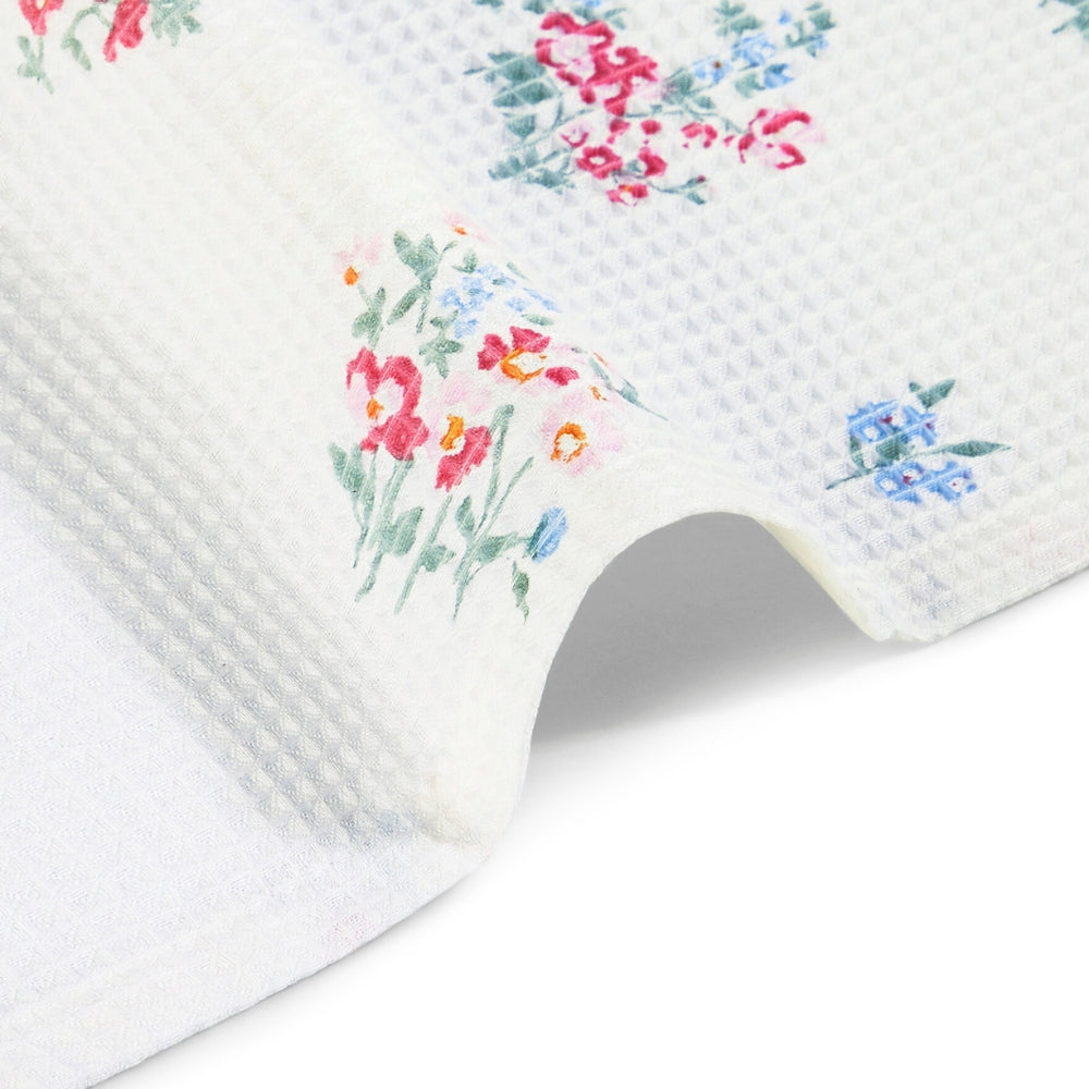 Regalia Waffle Floral Drift Bath Towel- White