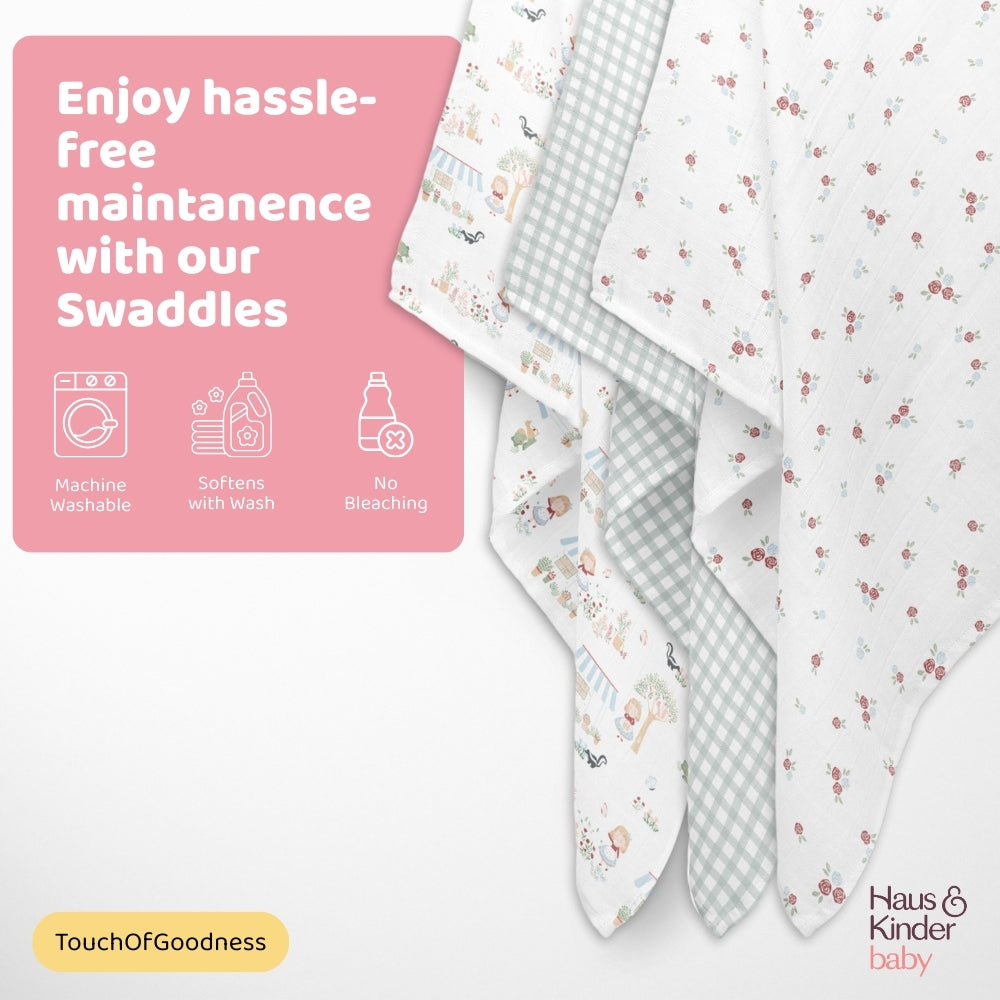 Scarlet In Garden Collection Muslin Swaddle- Pack Of 3