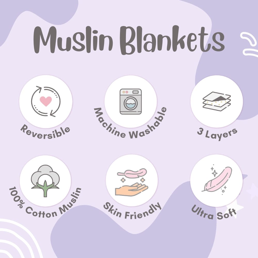 100% Cotton Muslin Reversible Blanket for New Born Baby