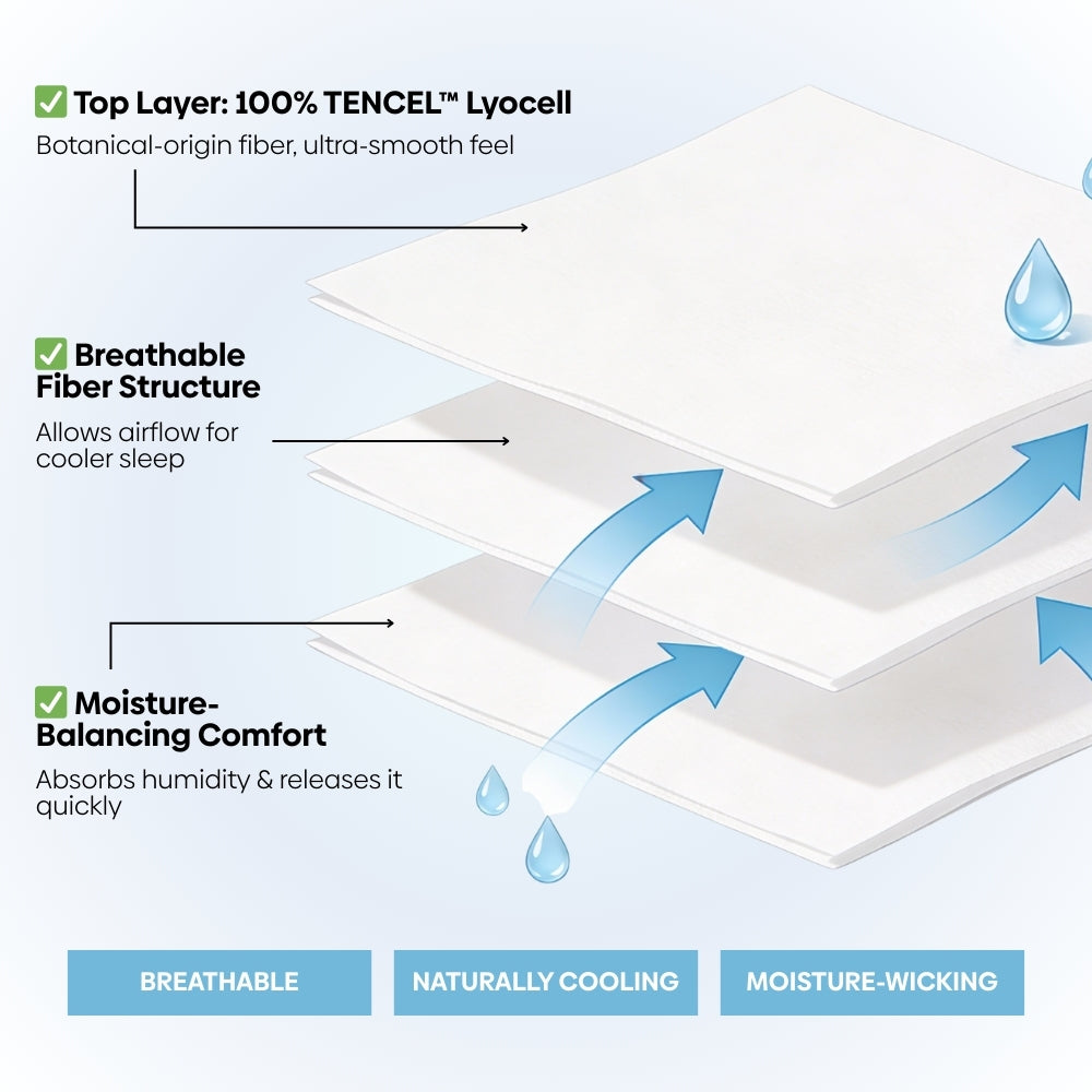 • Perfect year-round—Tencel wicks moisture to keep you cool in summer, warm in winter, and silky-smooth for a refined touch